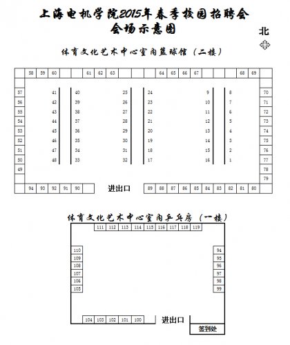 为更好地服务于企业的人才发展战略,促进2015届毕业生充分就业,我校定于2015年3月24日(周二)在闵行华宁路校区体育文化中心2楼(闵行区华宁路111号),举办“上海电机学院2015届毕业生春季校园招聘会”,请2015届毕业生互相转告,踊跃参加。 一、招聘会时间和地点 招聘会时间:2015年3月24日(周二)13:00-15:00 招聘会地点:上海电机学院闵行华宁路校区体育文化中心3楼(闵行区华宁路111号) 二、参会企业一览 展位号 单位名称 展位号 单位名称 1 上海维科精密模塑有限公司 61 索迪斯(上海)管理服务有限公司 2 上海仪电显示材料有限公司 62 上海微创软件股份有限公司 3 上海海越安全工程设备有限公司 63 上海福伊特水电设备有限公司 4 盖米阀门(上海)有限公司 64 三菱电机上海机电电梯有限公司 5 上海卫生材料厂有限公司 65 上海电气集团上海电机厂有限公司 6 上海瀚氏模具成型有限公司 66 上海振华重工机械配套有限公司 7 博度电气(上海)有限公司 67 上海明东集装箱码头有限公司 8 上海保兴生物设备工程有限公司 68 上海柘中电气股份有限公司 9 上海苏宁云商销售有限公司 69 大同(上海)有限公司 10 上海欢校信息科技有限公司 70 上海电装燃油喷射有限公司 11 上海境安环境检测技术有限公司 71 上海天马微电子有限公司 12 花旗银行(中国)有限公司上海分行 72 上海微电子装备有限公司 13 上海浦东发展银行股份有限公司信用卡中心 73 上海中航光电子有限公司 14 上海力标实业有限公司 74 上海华力微电子有限公司 15 上海航天设备制造总厂 75 大金空调(上海)有限公司 16 中国太平洋人寿保险股份有限公司上海分公司 76 大金空调技术(上海)有限公司 17 上海航天有线电厂有限公司 77 上海一鉴天电子有限公司 18 上海申美饮料食品有限公司 78 上海博泽电机有限公司 19 必维申美商品检测(上海)有限公司 79 上海景奕电子科技有限公司 20 上海紫竹人力资源服务有限公司 80 相舆科技(上海)有限公司 21 上海花王化学有限公司 81 上海恒瑞医药有限公司 22 上海花王有限公司 82 上海大郡动力控制技术有限公司 23 中国兵器装备集团上海电控研究所 83 上海智享会商务服务有限公司 24 上海天昭石油化工有限公司 84 上海卡博特化工有限公司 25 上海锦河餐饮管理有限公司 85 远纺工业(上海)有限公司 26 满记甜品(上海)有限公司 86 上海卡童尼儿童乐园有限公司 27 上海江崎格力高南奉食品有限公司 87 上海优生婴儿用品有限公司 28 上海必胜客有限公司 88 上海新欧尚超市有限公司人民店 29 上海肯德基有限公司 89 上海徐汇区凯顿进修学校 30 上海统一星巴克咖啡有限公司 90 北京中亦安图科技股份有限公司上海分公司 31 石二锅(上海)餐饮管理有限公司 91 上海吉的堡教育软件开发有限公司 32 杭州顶益食品有限公司上海分公司 92 上海寰创通信科技股份有限公司 33 上海掌和信息科技有限公司 93 上海优度宽带科技有限公司 34 上海成思信息科技有限公司 94 上海嘉创通讯设备有限公司 35 上海宝孚自动化工程技术有限公司(宝信软件) 95 上海钜派投资集团有限公司 36 上海商众科技有限公司 96 上海福锐企业管理咨询有限公司 37 上海恒信电脑软件有限公司 97 上海勃通实业有限公司 38 上海网慧信息科技有限公司 98 滔搏投资(上海)有限公司 39 上海火溶信息科技有限公司 99 特易购商业(上海)有限公司河南南路分公司 40 上海创息信息科技有限公司 100 新拓博国际物流(上海)有限公司 41 上海瑭锦信息技术有限公司 101 上海俱通企业管理有限公司 42 上海驰云信息科技有限公司 102 同策房产咨询股份有限公司 43 上海戊禾信息技术有限公司 103 上海久游网路科技有限公司 44 上海优族信息技术有限公司 104 上海宝盖头企业发展有限公司 45 上海胜蓝信息技术服务有限公司 105 辽宁乐股软件股份有限公司 46 上海宏赛自动化电气有限公司 106 上海保兴生物设备销售有限公司 47 京滨电子装置研究开发(上海)有限公司 107 上海恒域国际贸易有限公司 48 上海庆科信息技术有限公司 108 上海胧爱文化传播有限公司 49 上海益达机械有限公司 109 上海灏银资产管理有限公司 50 上海台新食品机械有限公司 110 上海万德房地产经纪有限公司 51 上海稳健压缩机有限公司 111 上海成名房地产咨询有限公司 52 上海世达尔现代农机有限公司 112 上海焕扬文化传播有限公司 53 上海川奇机电设备有限公司 113 睿熙企业管理咨询(上海)有限公司 54 大隈机械(上海)有限公司 114 上海极米电子商务有限公司 55 上海弘特自动化电气仪表有限公司 115 上海安驰体育用品有限公司 56 上海德梅柯汽车装备制造有限公司 116 上海特普沃德国际物流有限公司 57 康奈可(上海)汽车技术研发有限公司 117 上海渥誊工贸有限公司 58 三信国际电器上海有限公司 118 青岛福元运通投资管理有限公司上海分公司 59 上海开通数控有限公司 119 上海如家酒店管理有限公司 60 安思特管道系统工程(上海)有限公司 120 上海新园雅致酒店经营