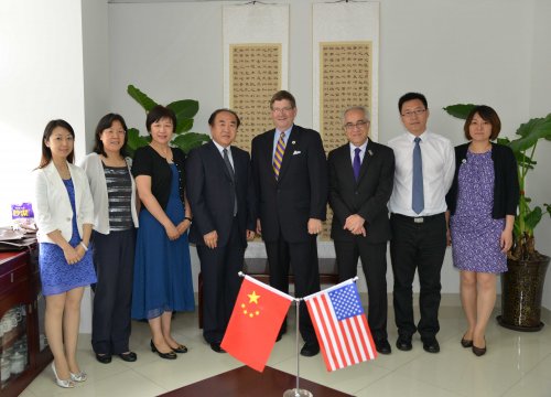 7月1日,美国北爱荷华大学(University of NorthernIowa)校长WilliamN.Ruud教授一行访问我校。校长胡晟、副校长杨若凡、国际合作与交流处、商学院负责人在临港校区文理楼313会议室接待了校长一行。 校长胡晟代表学校对Ruud校长来访表示了热烈欢迎。他说,上海电机学院与美国北爱荷华大学经过十年的合作共建,建立了深厚的友谊。两校在本科合作办学、教师交流、学生长期学习及联合培养等方面积累了丰富的合作经验。他希望今后两校从以下几个方面进一步拓展交流与合作:第一,继续深入办好“2+2”国际经济与贸易本科专业,选派更多优秀的电机学生赴北爱荷华大学学习;第二,建立更多的学生交流平台,深入开展好暑期学分课程项目、学生领袖团互访、长期交换生等项目;第三,深入开展师资交流,欢迎更多优秀的北爱荷华教授来我校担任“海外名师”。杨若凡副校长在会谈中也表示,两校合作办学所取得的成果离不开双方十多年来的共同努力,今后将鼓励我校优秀老师赴北爱荷华大学开设课程,推动合作项目的相互渗透和两校的共建互赢。WilliamN.Ruud校长对两校第一个十年合作充分表示了肯定,并展望在下一个十年会有更深层次的合作与交流。他还高度赞扬了赴北爱荷华大学学习的电机学子具有拼搏奋斗精神,并热情邀请胡晟校长在合适的时间访问北爱荷华大学。 我校自2005年起与美国北爱荷华大学建立合作关系,期间双方高层领导多次互访。目前已在“2+2”国际经济与贸易本科合作办学、学生联合培养、暑期学分课程以及“海外名师”项目等方面建立了密切的合作关系。自2011年至今,我校已连续选送近70名国际经济与贸易专业学生赴北爱荷华大学学习;今年暑期,还将选派30名学生赴该校进行一个月的课程学分项目学习。(张丹丹)