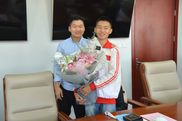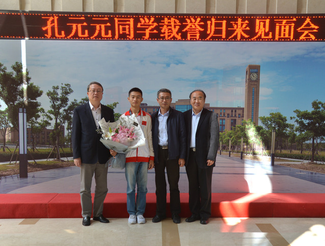 10月25日上午,孔元元参加第44届世界技能大赛后返校复课,党委书记孙培雷、校长胡晟、副校长焦斌与孔元元亲切会面,送上祝贺,关心孔元元返校后的学习和生活。