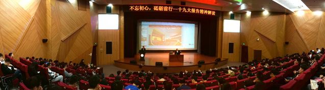 11月17日下午,学校临港校区小剧场座无虚席,500多名团员学生干部聚精会神地聆听校党委书记、校学习宣传贯彻党的十九大精神宣讲团团长孙培雷作的题为《不忘初心,砥砺前行——十九大报告精神解读》专题讲座。孙培雷旁征博引、深入浅出,结合时代发展特色,结合自身工作经历,结合我校发展历程,联系国家、学校和个人,化深奥理论为鲜明生动的事例,赢得了在场的阵阵掌声。