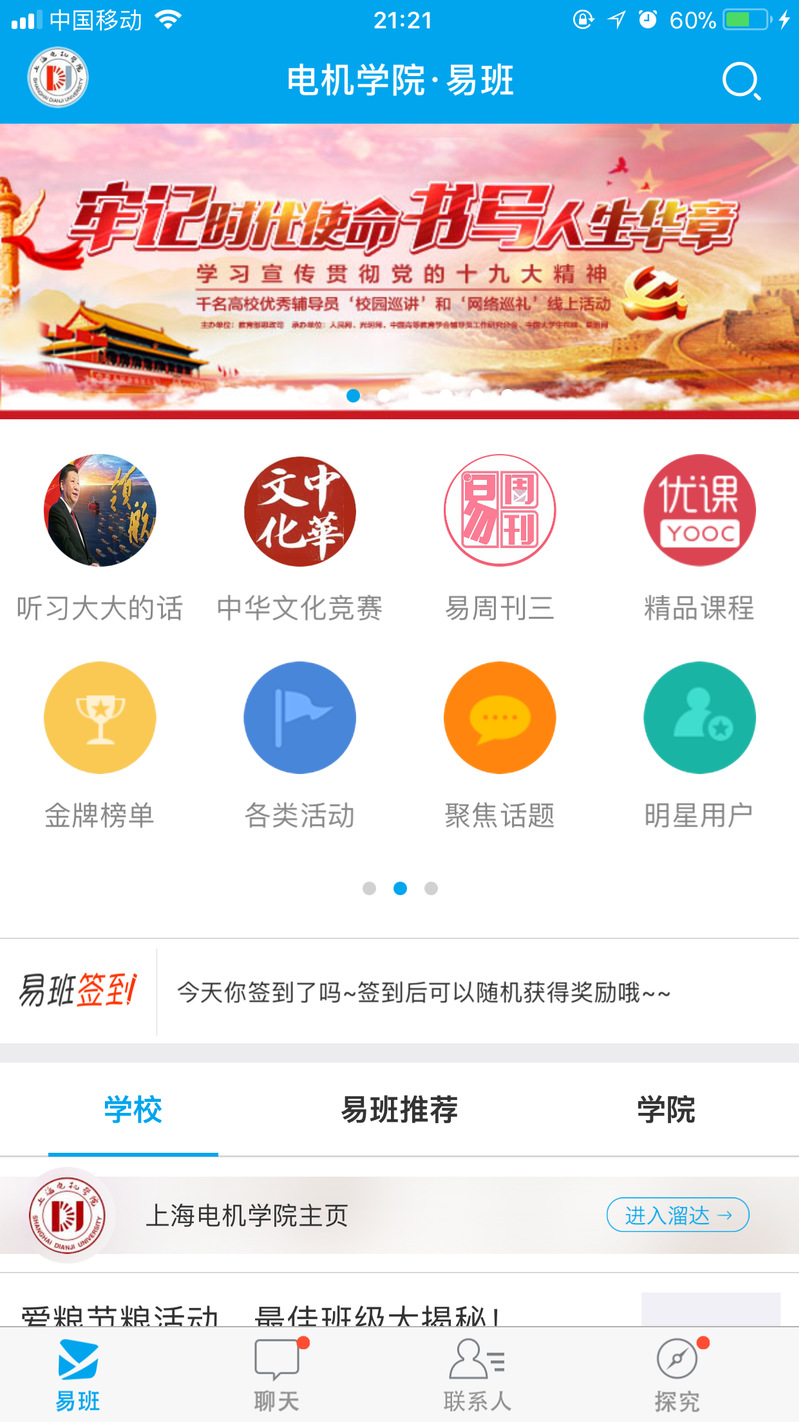 接下来,我校将进一步加强易班建设工作顶层设计和发挥学生主体作用。基于易班打造有思想、有服务、有特色的网络思想政治教育的做法,积极创新育人理念方式,以提供各类学业辅导资料为抓手,使学生学习热情得到进一步激发;结合易班轻应用功能模块,精心设计主题教育活动,落小落细,让思想引领工作更接地气;以迎新服务为重点,提供生活服务,让更多学生一入学就知道易班、使用易班、发展易班;进一步整合校、院、班三级活动资源,线上线下相融合,促使校园网络文化“动起来”。努力将易班建设成为集思想教育、教育教学、生活服务、文化娱乐为一体的大学生网络互动示范社区。(孔祥昆)