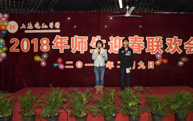2018年2月9日中午,上海电机学院师生迎春联欢会在临港校区二食堂二楼举行。校长胡晟、副校长焦斌、宣传部、国际交流处、学工部、保卫处以及各二级学院党政领导及辅导员与留校学生济济一堂,喜迎新春。
