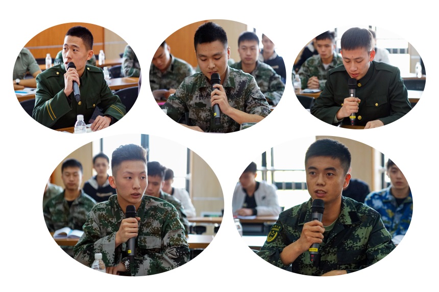 座谈会上,强军社作为校内唯一的国防教育类的社团,强军社社长韩鼎同学以PPT的形式向在座师生分享了今年以来开展的丰富多彩的国防教育主题活动,旨在打造退役学生温馨家园,成为校园里一道靓丽的风景线。王子豪、季成、刘司逸、杨建军四位退伍学生代表分享了他们在部队的经历与收获。他们纷纷表示,通过军旅生活的磨炼,不仅拓宽了视野、增长了见识,还培养了责任感和担当意识,心智上也更加坚韧和成熟。自由交流环节,学生就退役后遇到的一些疑惑和问题进行了交流,到场老师解答关于退役优抚、学业、升学、落户、档案、学费减免以及就业创业等方面的问题。