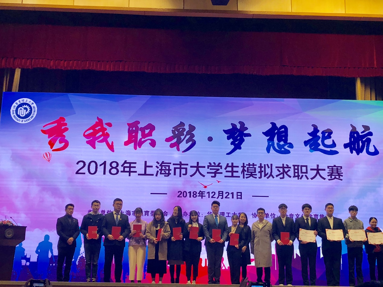 12月21日,2018年上海市大学生模拟求职大赛决赛在华东理工大学逸夫楼举行。我校机械学院谢珺通过院级推选、校级选拔、复赛甄选,最终获得优胜奖。商学院刘佳波和材料学院傅佳斌获得纪念奖。