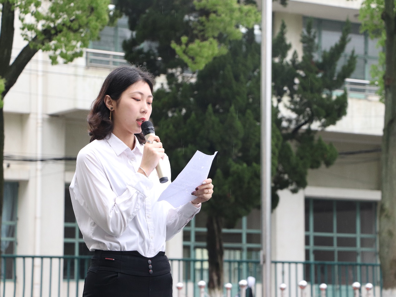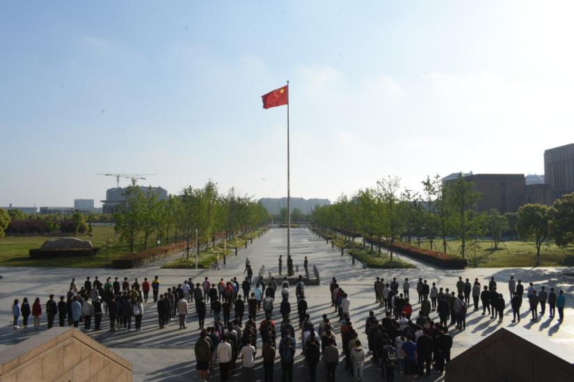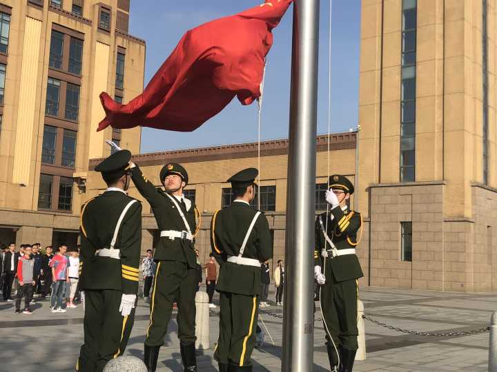上午七时许,到场青年学子拼出“五四 100”的方阵,用自己最饱满的精神状态迎接五四青年节,礼赞中国。国旗护卫队进行出旗、升旗仪式,随着鲜艳的五星红旗在庄严的国歌中冉冉升起,青年学子齐唱国歌,并向国旗行注目礼。随后,青年学子代表分别围绕如何传承和弘扬五四精神,做一名优秀共青团员进行了主题发言。