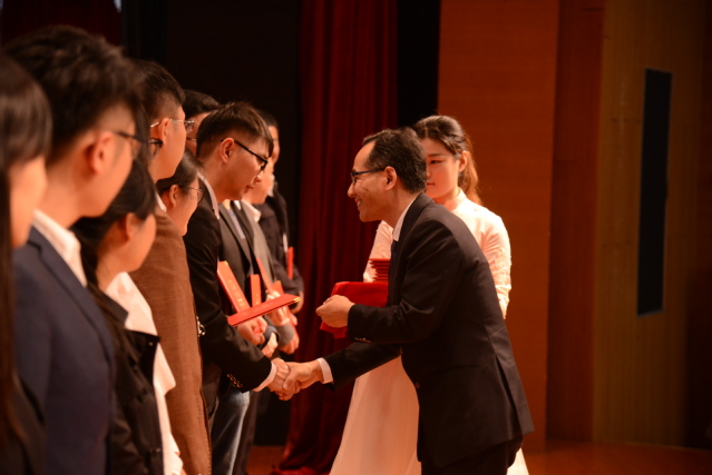 最后,孙培雷代表学校党政向受到表彰的先进集体和个人表示热烈的祝贺,向师生们致以亲切的问候!他对全校青年提三点希望:第一,希望青年学子们树立崇高的理想信念。要认真学习党的十九大精神,以习近平新时代中国特色社会主义思想为指导,扣好人生的第一粒扣子,牢固树立社会主义核心价值观,并将其作为自身行为准则。第二,希望青年学子树立正确的学习观念。学习联系实际,付诸实践,激发创造创新活力,走在创新创业前列,把创新创业的方向瞄准科技创新最前沿,紧紧围绕互联网+,人工智能等领域,创造新模式,开发新技术,让青春的火焰为创新创业燃烧。第三、希望青年学子树立正确的发展观念。“先天下之忧而忧。”青年学子要勇于担当,把自身前途命运与国家和民族的前途命运紧密联系在一起,自觉服务祖国,无私奉献社会,积极参与志愿服务、社会实践、文化艺术等活动,积极践行上海城市精神,在奉献中绽放青春,在奋斗中砥砺前进。